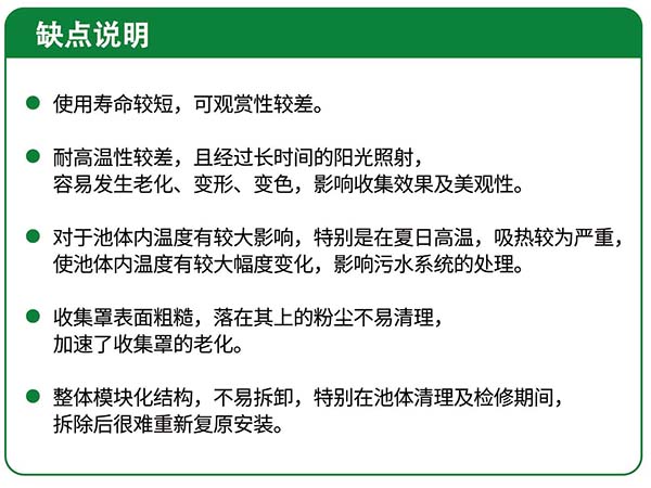 玻璃鋼蓋板多采用有機(jī)玻璃鋼,具有鋼的力學(xué)特性,有一定的抗拉彎強(qiáng)度;在制造過(guò)程中,通過(guò)合理的添加配劑,也具有一定的耐腐蝕性,但與 GUPVC加蓋收集方式相比,也有一定的缺點(diǎn):